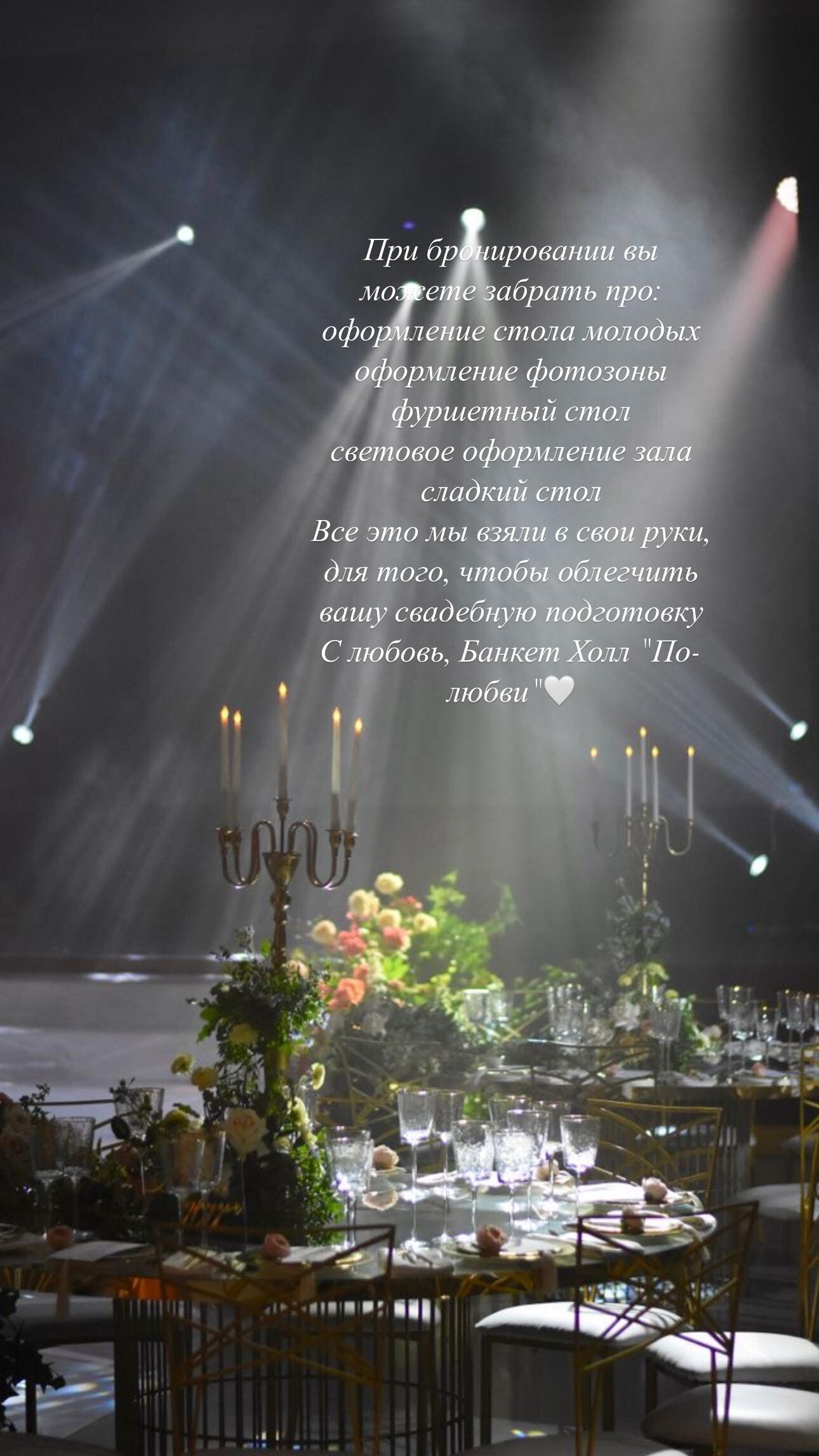 Банкетный зал По любви - это место, где каждый день как праздник или значимое мероприятие. Наше убранство и отлаженный сервис создадут необходимое настроение, чтобы вы могли всецело погрузиться в праздничную атмосферу. Очень важно дать нам информацию по его формату и желаемой дате, т.к. нужно определиться со многими оргвопросами: рассадка гостей, расстановка мебели, оборудование, которое потребуется вам в процессе. Мы рады предложить вам блюда интернациональной кухни.